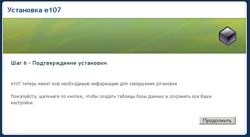 Нажимаете "Продолжить" и попадаете на следующий шаг установки: