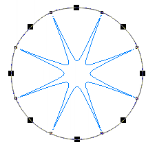Нарисуйте окружность и преобразуйте ее в кривую (см. предыдущее занятие). Выберите инструмент "Форма" и выделите с помощью рамки все четыре узла кривой и дважды нажмите клавишу "+" на цифровой части клавиатуры, чтобы число узлов увеличилось до 16.
