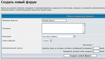 Во вновь созданной категории введите название форума и нажмите кнопку "Создать новый форум".