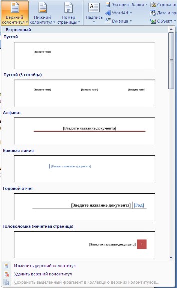 Колонтитулы и нумерация страниц Word 2007